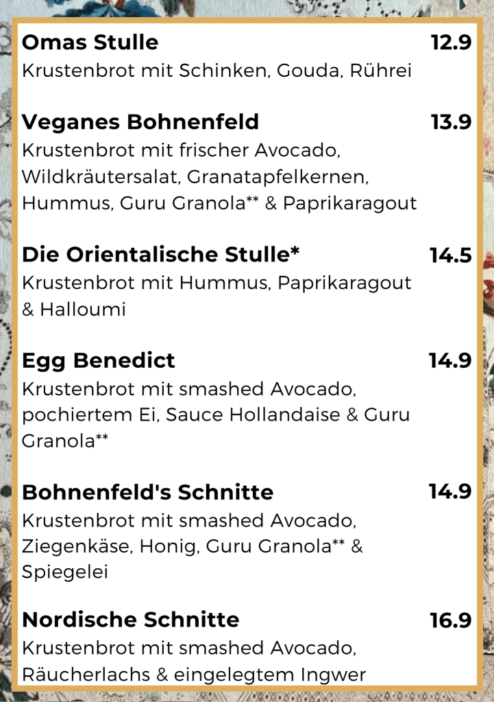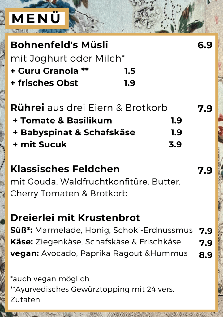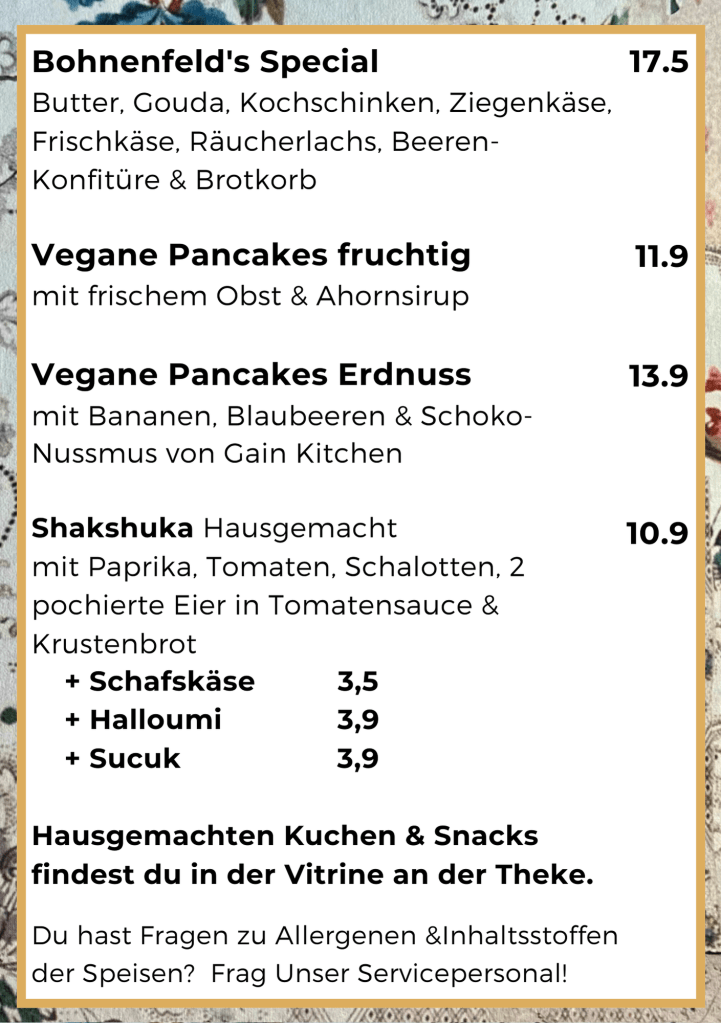 Speisekarte Café Bohnenfeld